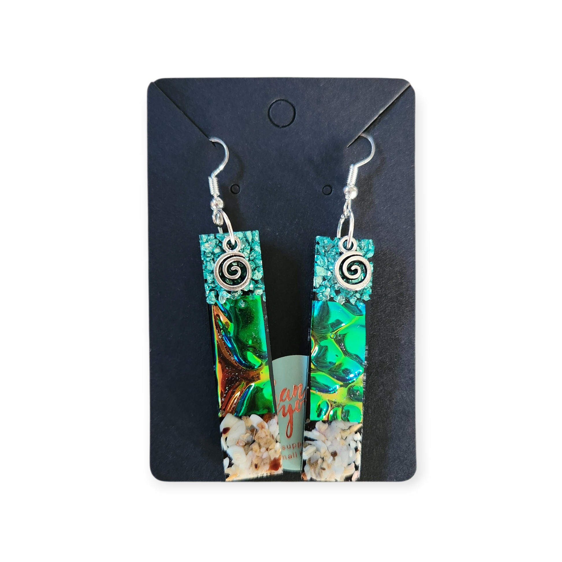 Dazzle those you meet with these earrings, a snapshot of the ocean captured forever beneath crystal clear resin. Hold a mirror to the idyllic white sands & turquoise waters of your dreams.