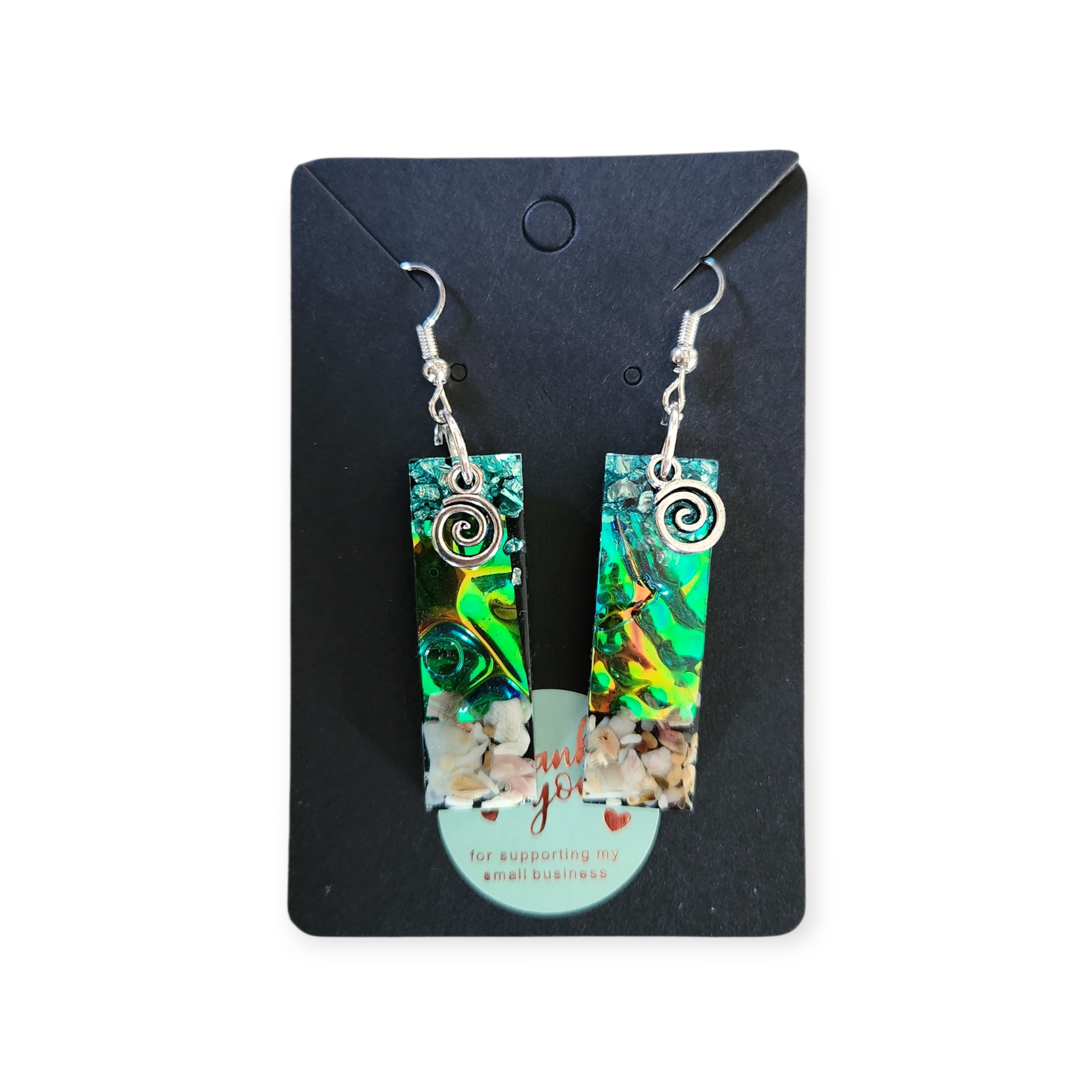 Dazzle those you meet with these earrings, a snapshot of the ocean captured forever beneath crystal clear resin. Hold a mirror to the idyllic white sands & turquoise waters of your dreams.
