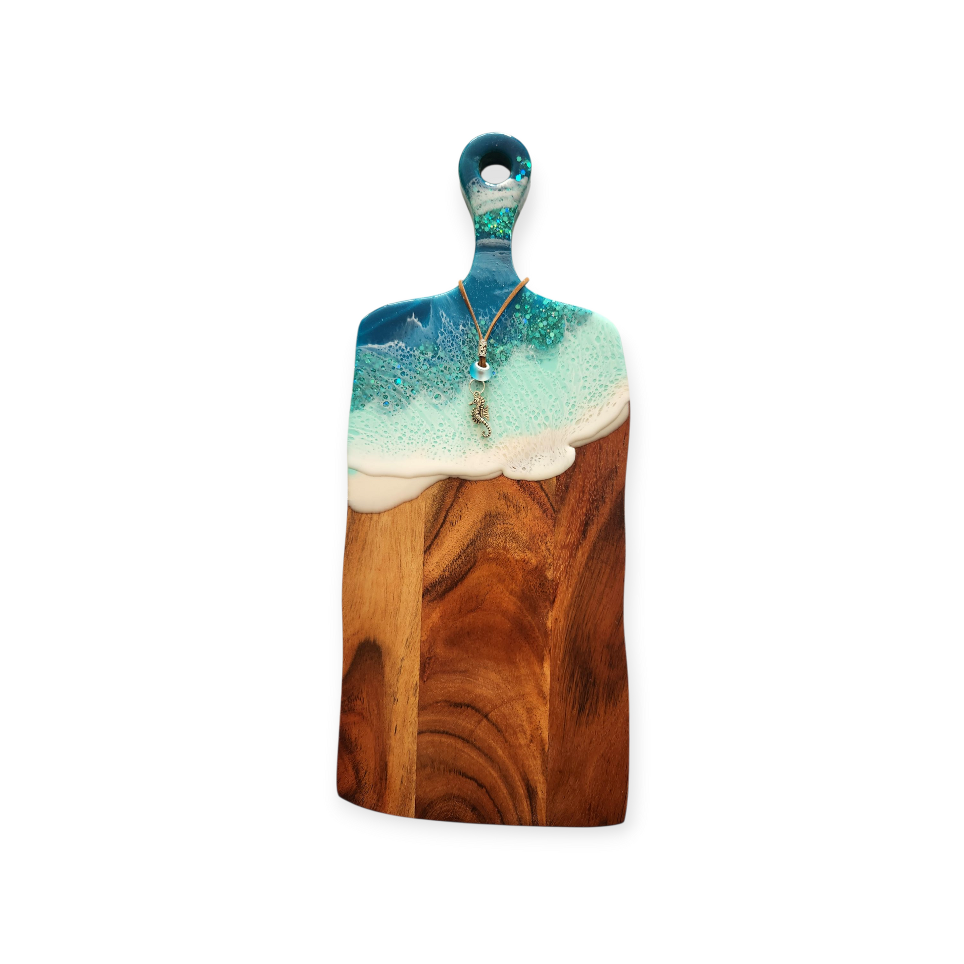 All boards come with a unique ocean charm of your choice. Please select from a seahorse, starfish, ocean wave, whale tail or turtle.